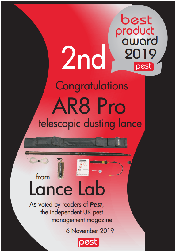 AR 8 Pro –A new telescopic dusting lance with a working height of 8 m. Powered by a 1 litre stainless steel refillable pressure tank which is easily pumped up before use (approximately 9-10 pump actions required to reach 3 Bar pressure using a common stirrup pump). Supplied with a 35 cm flexible nozzle allowing precision application. Can also be filled using a battery powered vehicle tyre inflator pump.